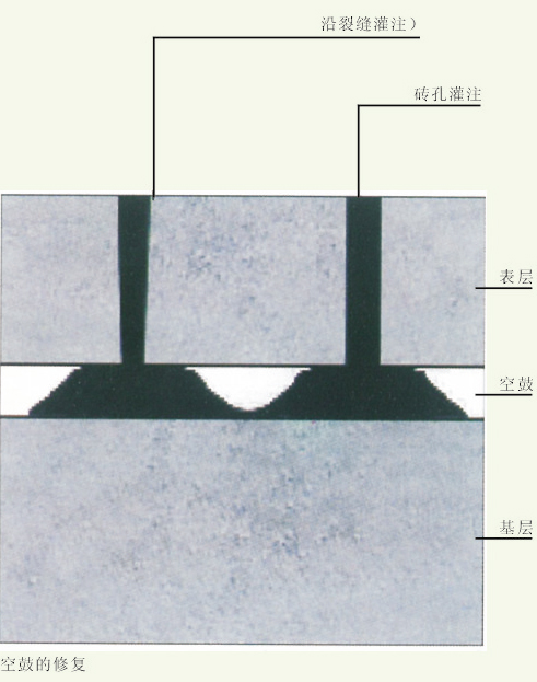 *將空鼓處切縫或打孔灌注環(huán)氧樹脂漿料。