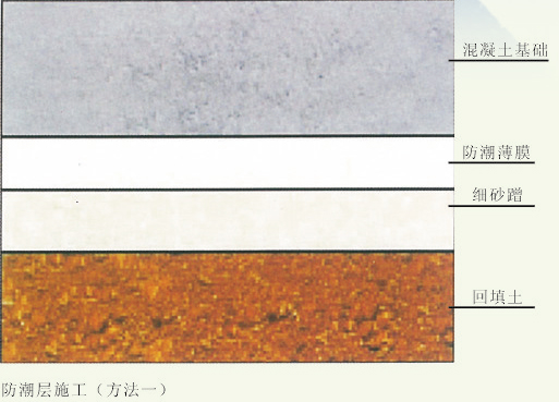 方法一:在回填土上鋪細砂,并鋪設塑膠薄膜,搭接寬度不小于10cm.然后澆注混凝土。